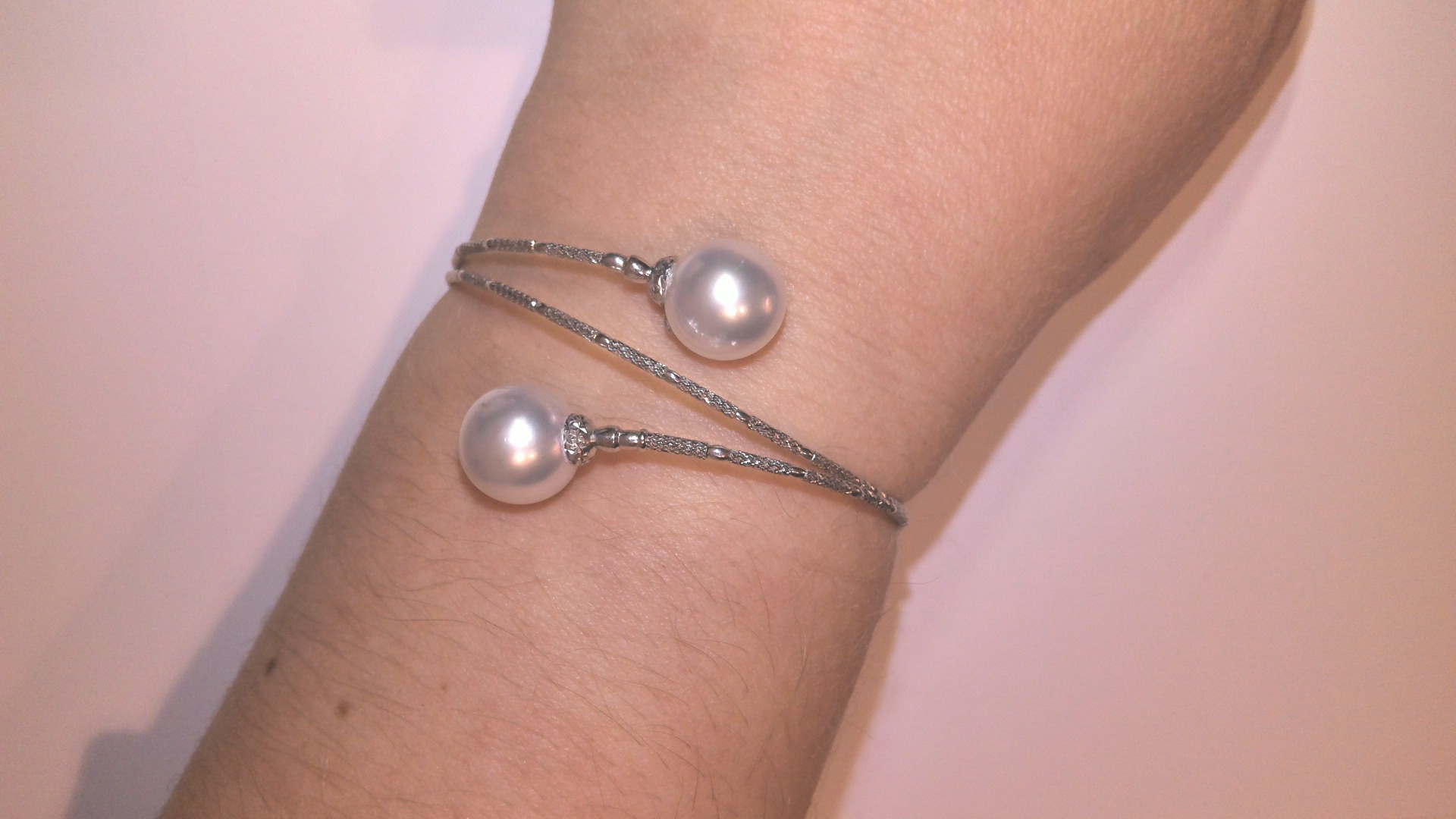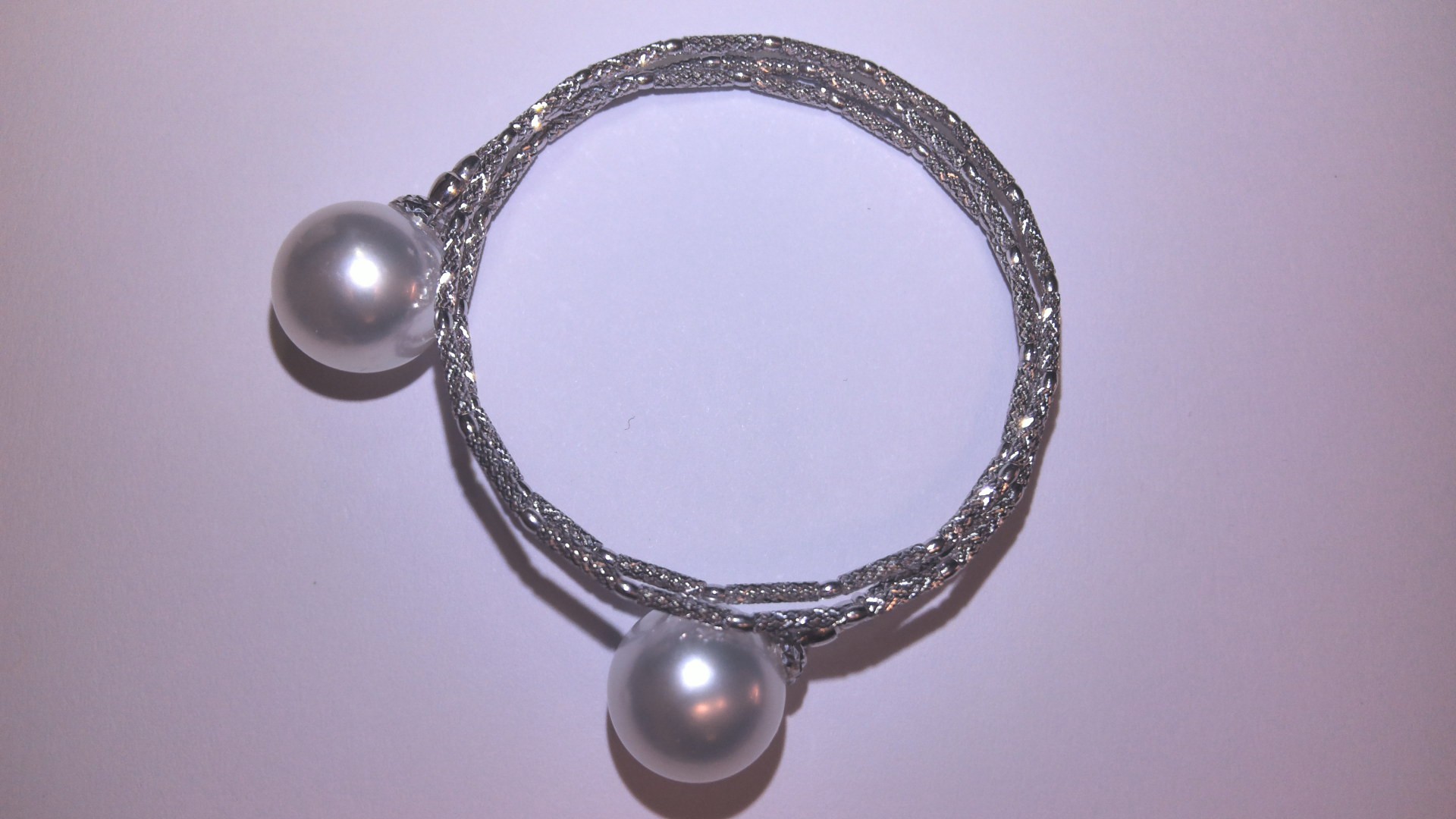 Flexible and delicate, this pearl bracelet inspires to unconventional looks. Totally closureless, it adapts to different widths and puts the two large South Sea pearls at the ends of the 18k white gold memory wire into the spotlight. At 37cm leghth, it is perfect for minimalist looks or casual layering.