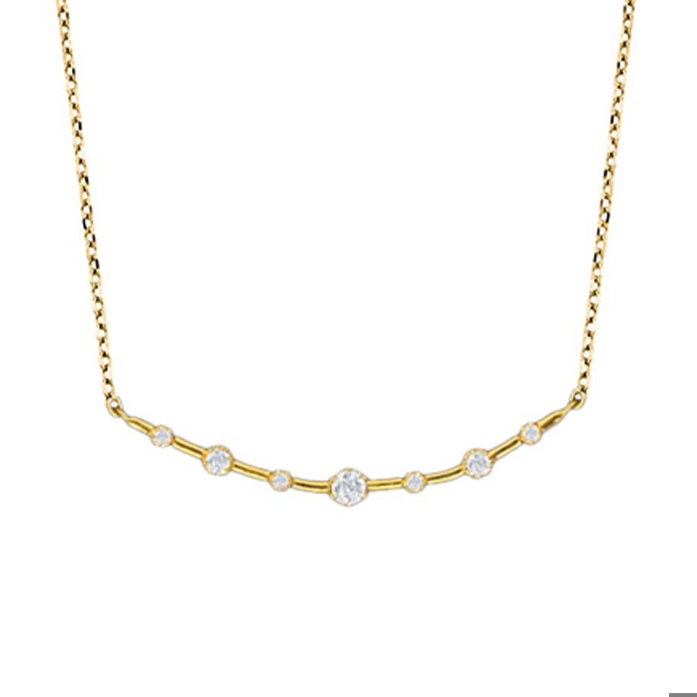 Ce collier fin en argent 925 plaqué or allie chic contemporain et élégance intemporelle. Sept zircones blanches finement serties diffusent un éclat doux, discret mais marquant – une touche de style pour toutes vos tenues.